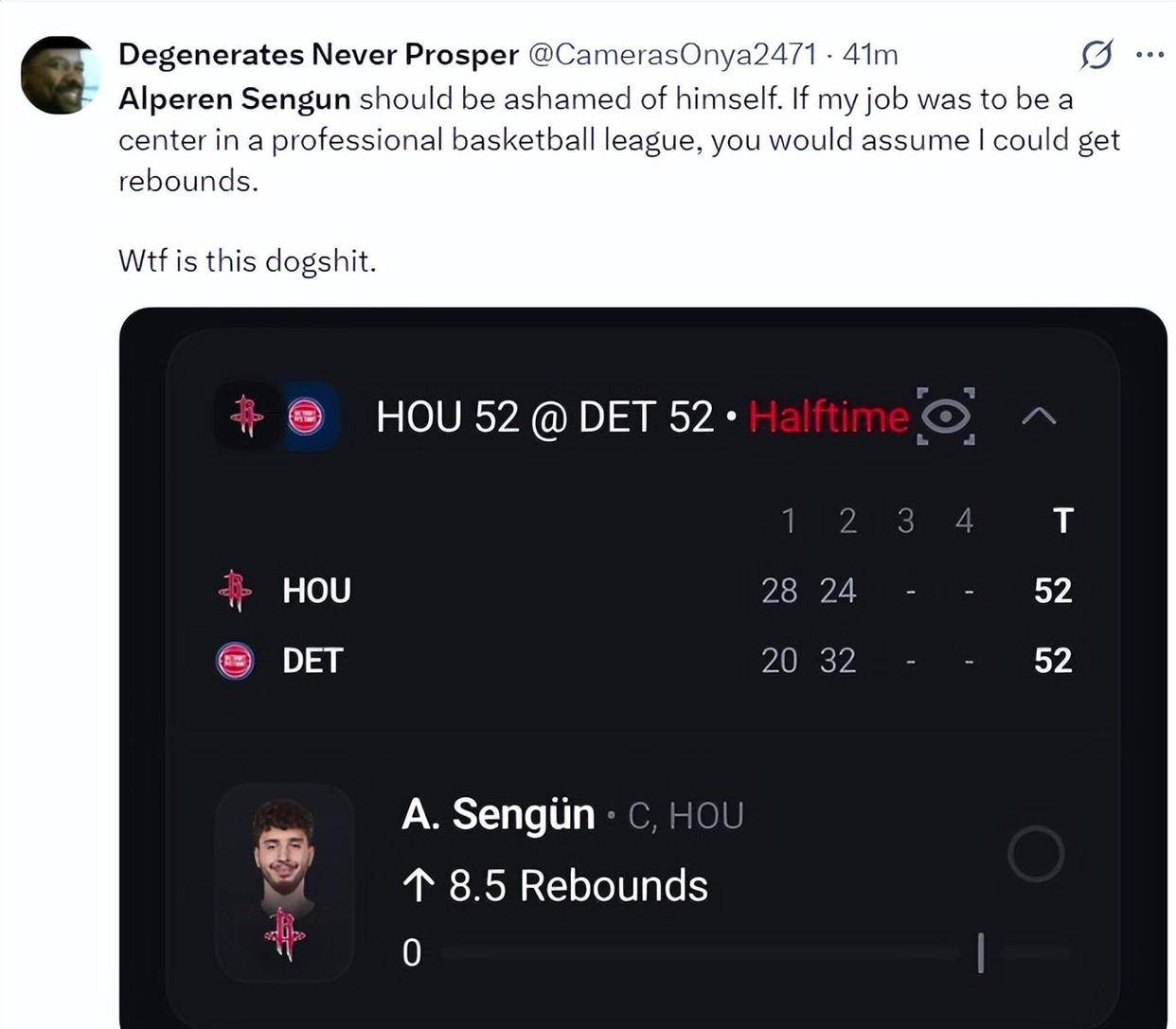 这并非偶然现象。之前输给76人队的比赛中,申京在加时赛被乔治血帽,赛后还嘴硬地表示“篮板不是我的主要任务”。有队友私下抱怨:“他以为自己是约基奇,其实连祖巴茨都不如!”